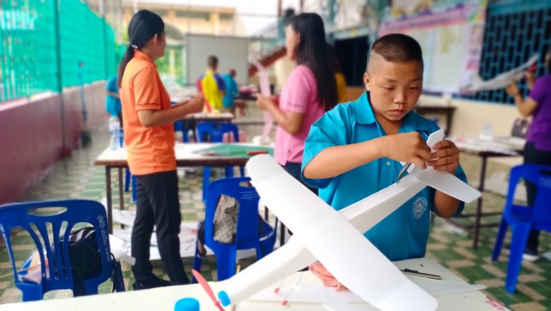 31 สิงหาคม 2562 อบรมเครื่องบนพลังยาง ณ โรงเรียนวัดหนองกระเบียน